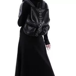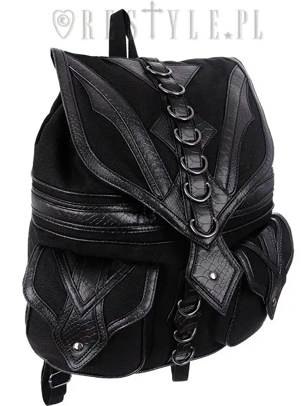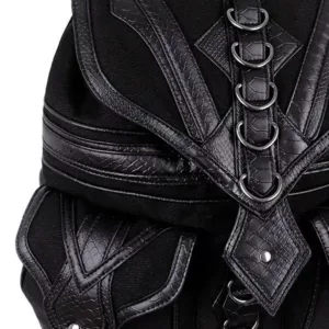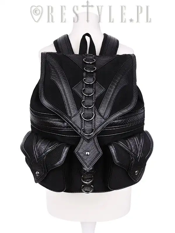 • Vorne in der Mitte ist ein breiter Gurt mit einer Reihe aus D-Ringen