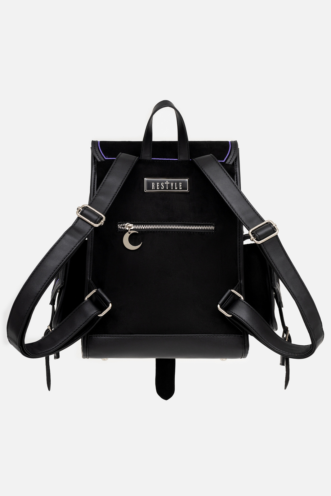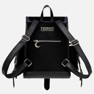 • Reißverschlusstasche auf der Rückseite mit mondförmigen Schieber