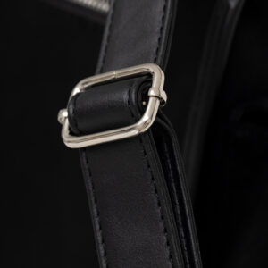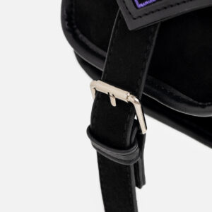 • Material: tiefschwarzes Wildlederimitat und kontrastierender PU-Lederbesatz, 100% vegan und Tierversuchsfrei